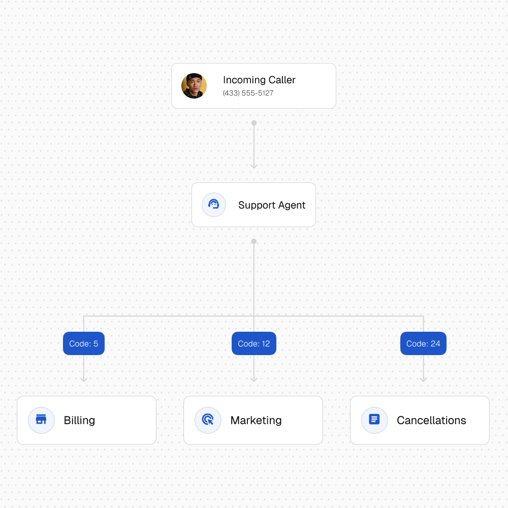 Tally Codes let agents assign a queued call to a specific category during the call, so you can track what the call was for, route costs correctly, and keep your call data consistent.